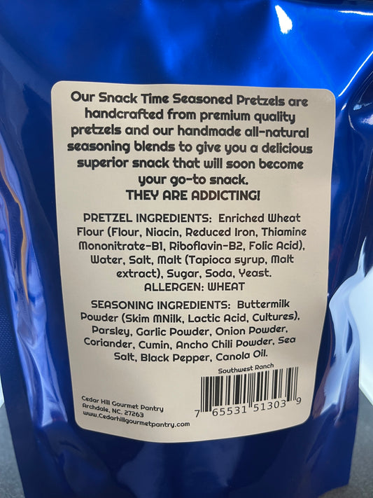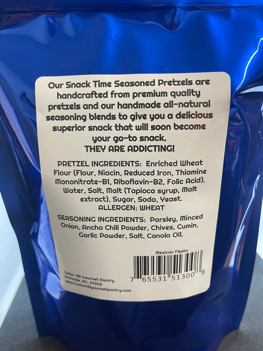 A delicious mix of our handcrafted seasonings and high quality pretzels. Perfect to dip in one of our delicious dips!